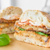 Chicken cutlet topped with fresh eggplant, ricotta, mozzarella & marinara.